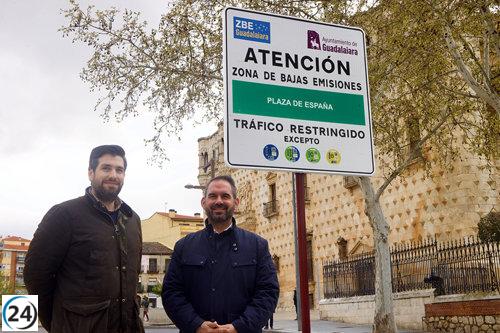 La Zona de Bajas Emisiones comienza a funcionar en Guadalajara con señales de acceso visibles.