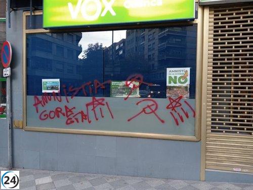 Vox Cuenca: sede vandalizada con mensajes pro amnistía y condena del PSOE.