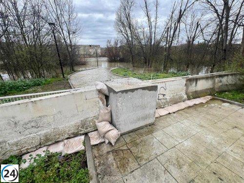La UME inicia la retirada del dique en el Hospital de Parapléjicos tras la mejoría del río Tajo.