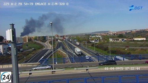 Azuqueca restringe el tráfico cerca de la nave del polígono Ródano afectada por el incendio.